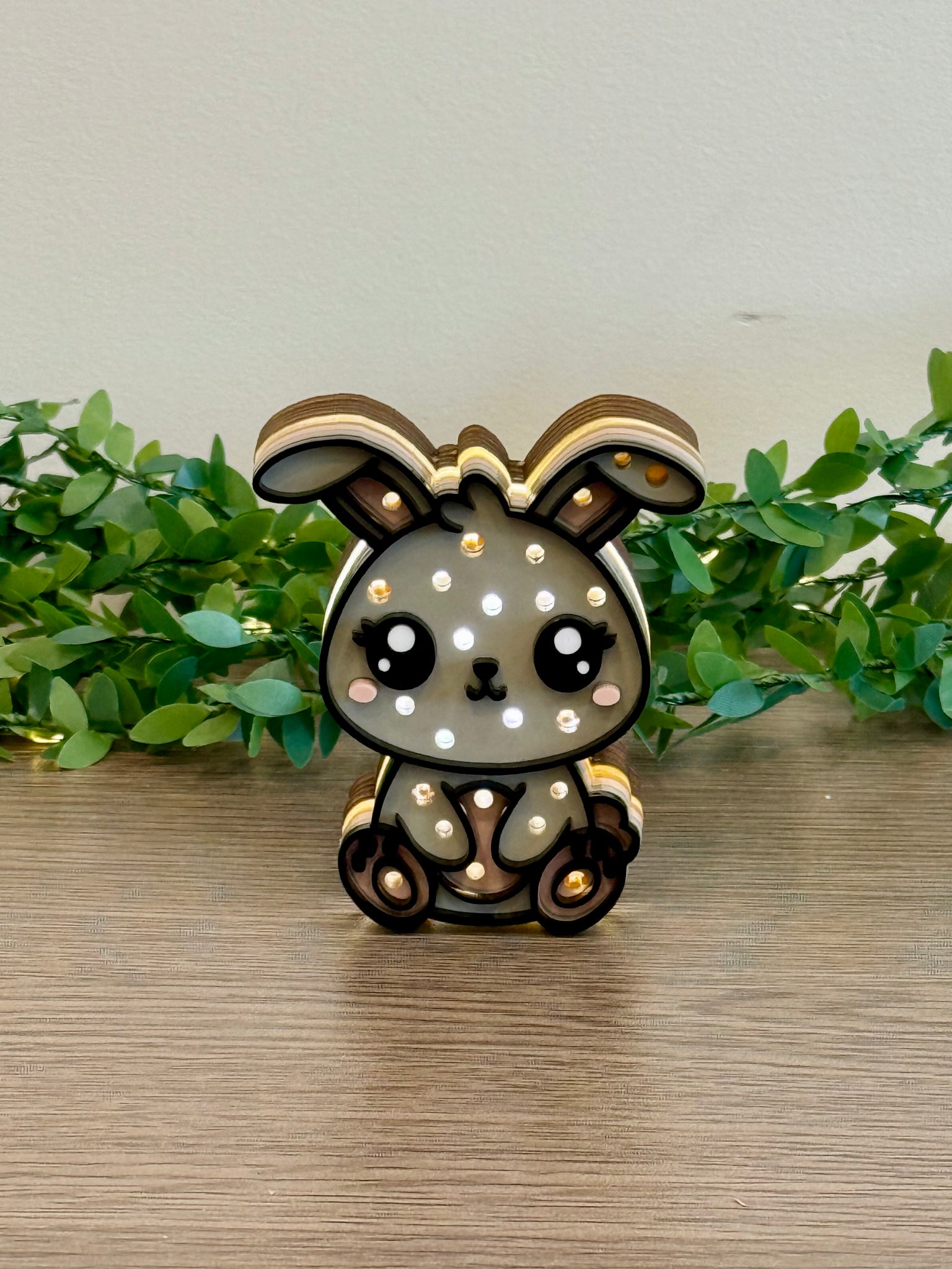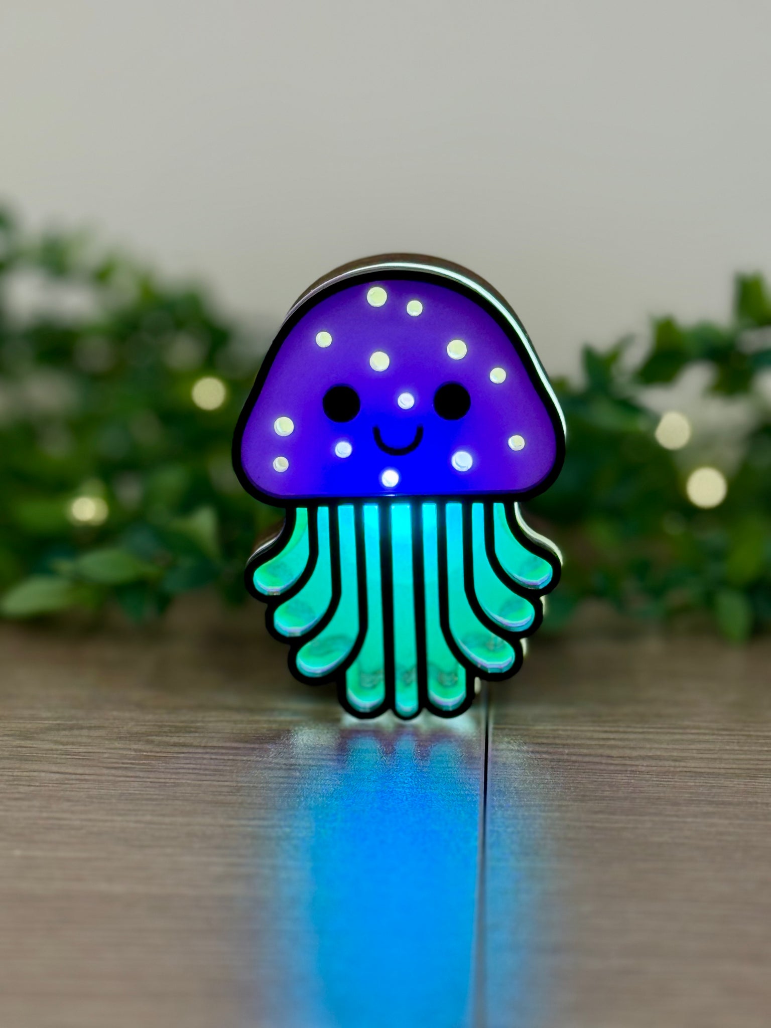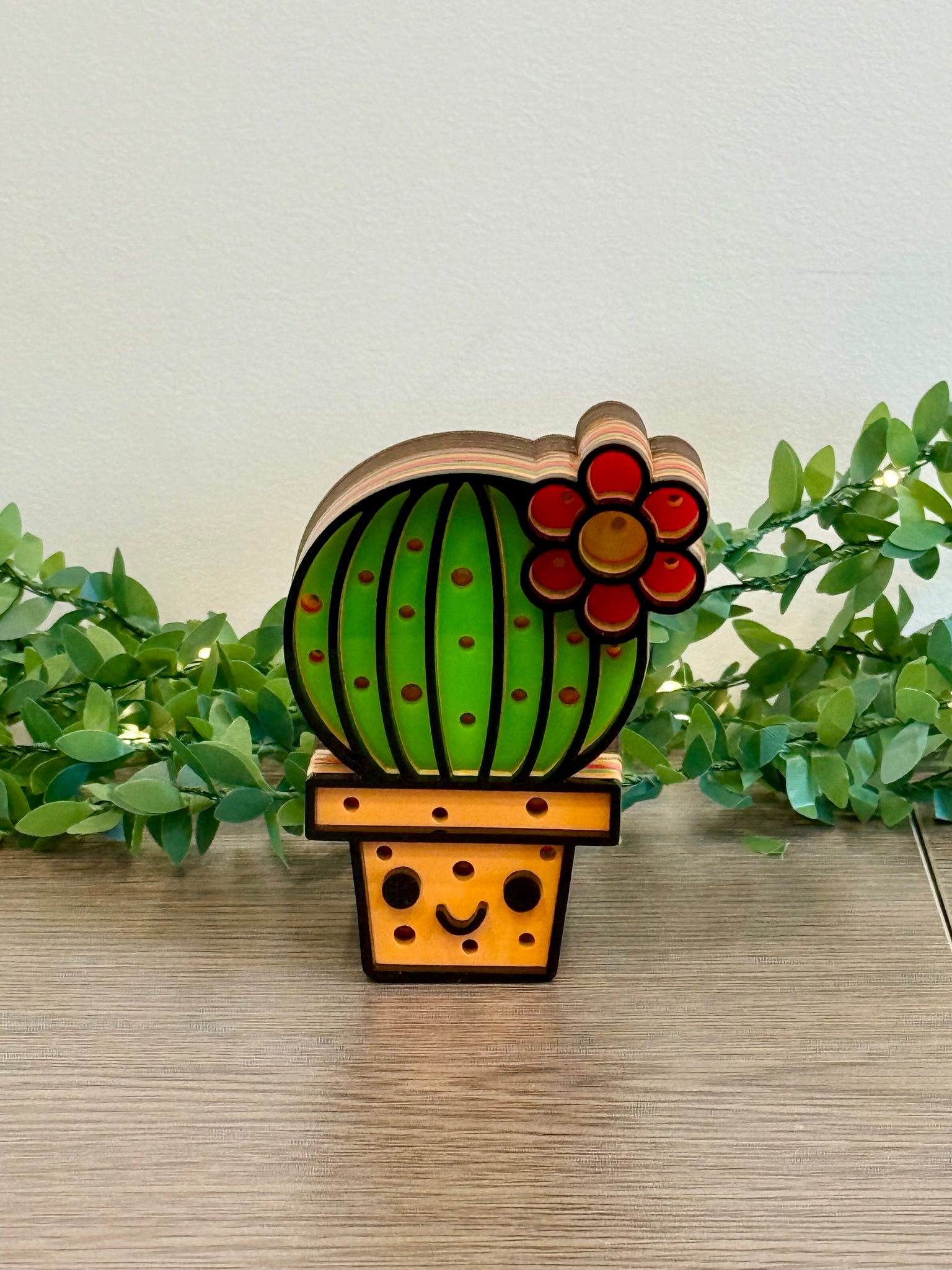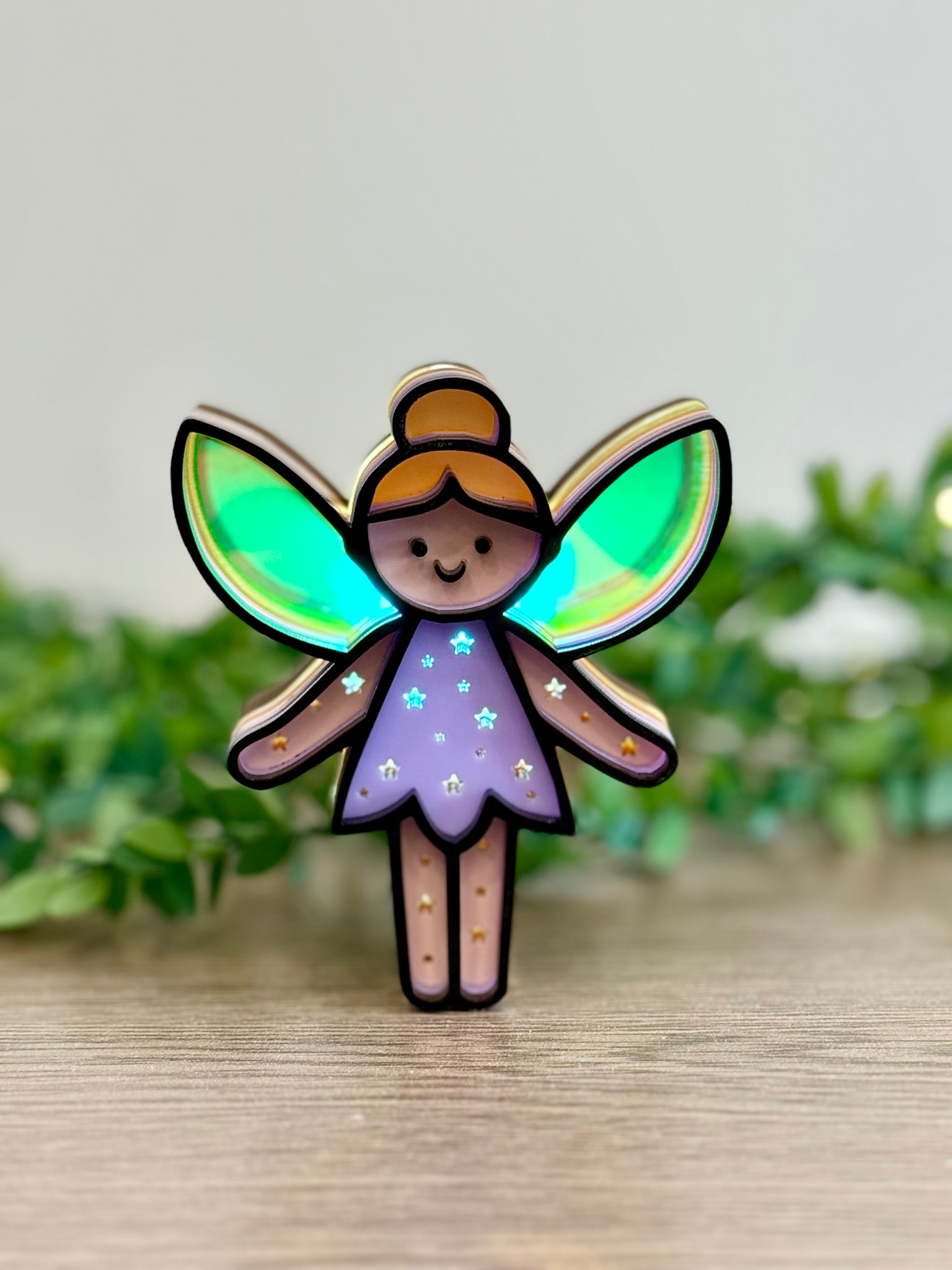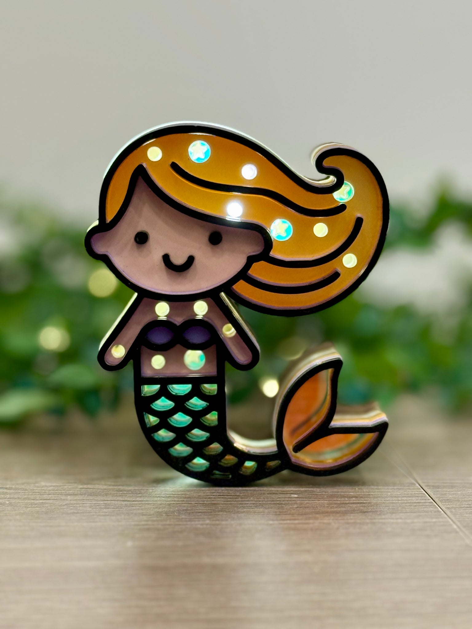 Choose between two enchanting sizes! The small night lights (about 3–4") feature a USB bulb-style light, perfect for a cozy glow in any corner. The large night lights (6–8") are lit with a string of delicate fairy lights, creating a soft, magical ambiance. Both are crafted with layered acrylic and wood for a unique, handcrafted touch.