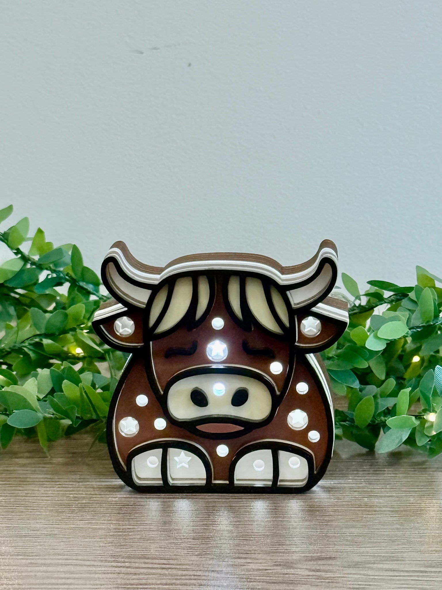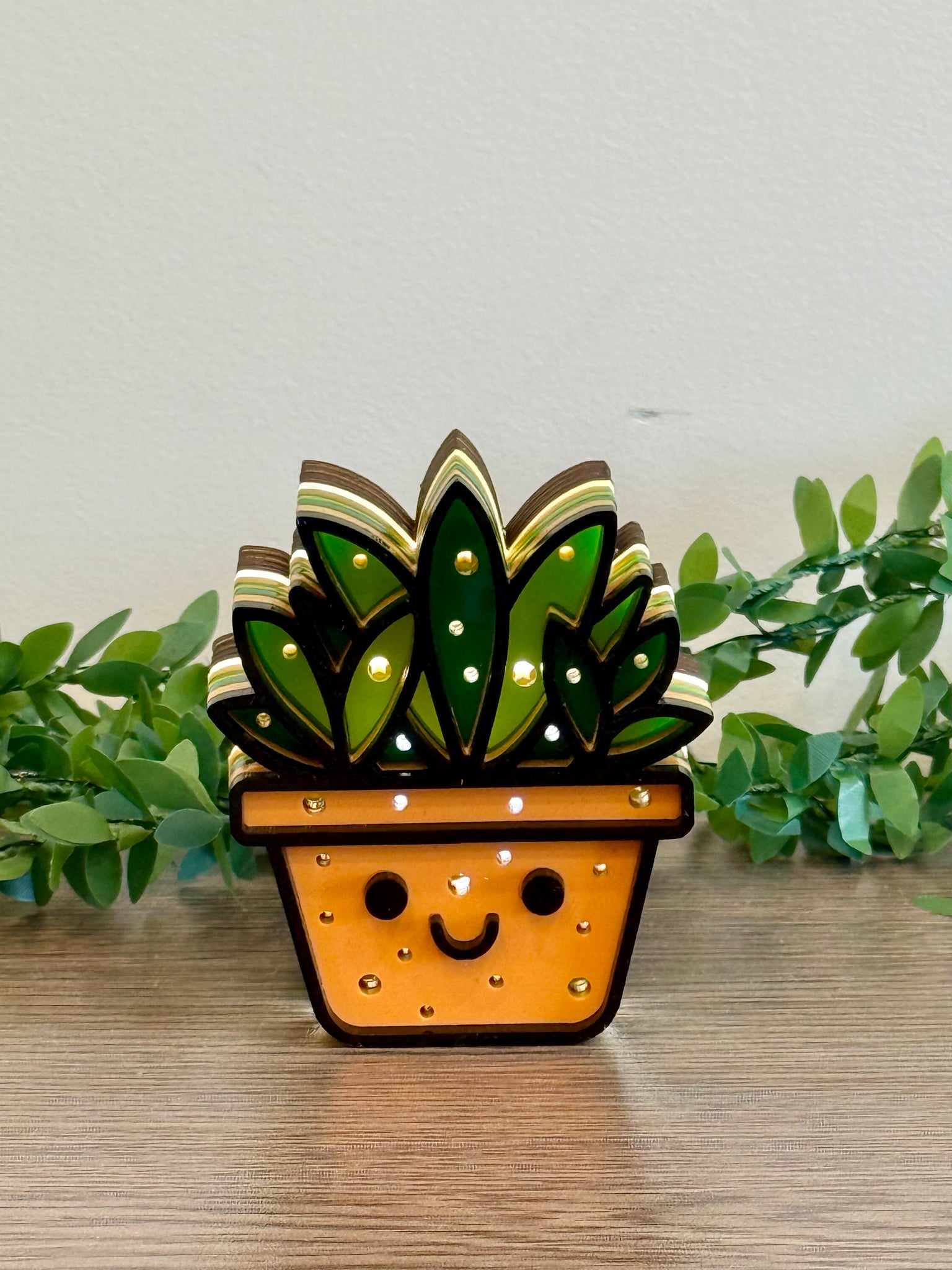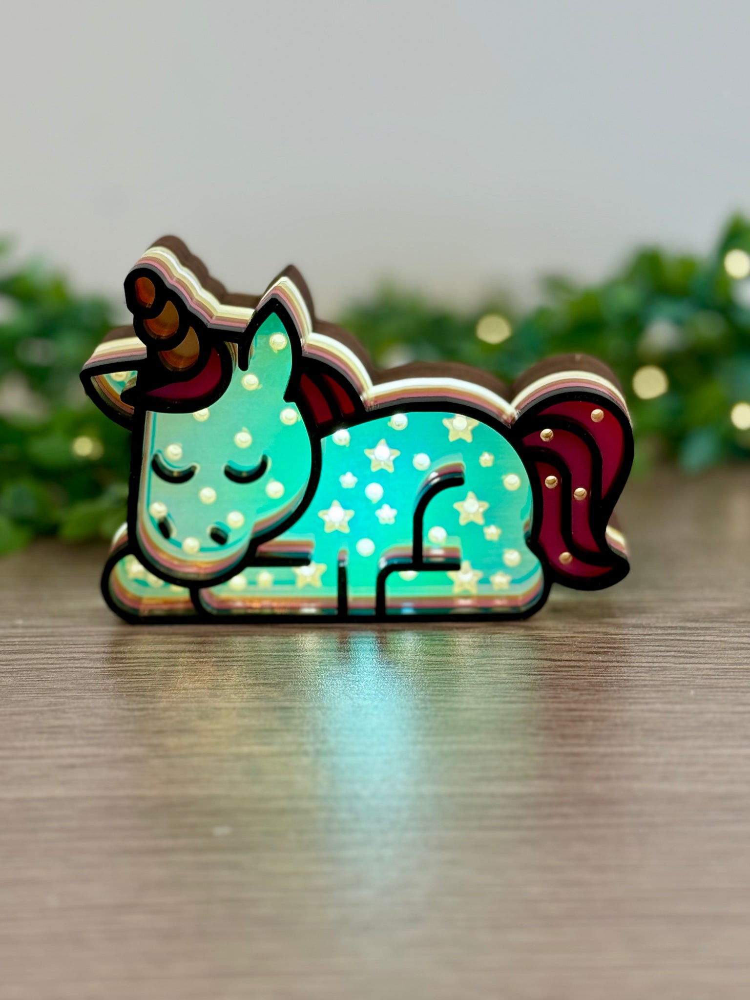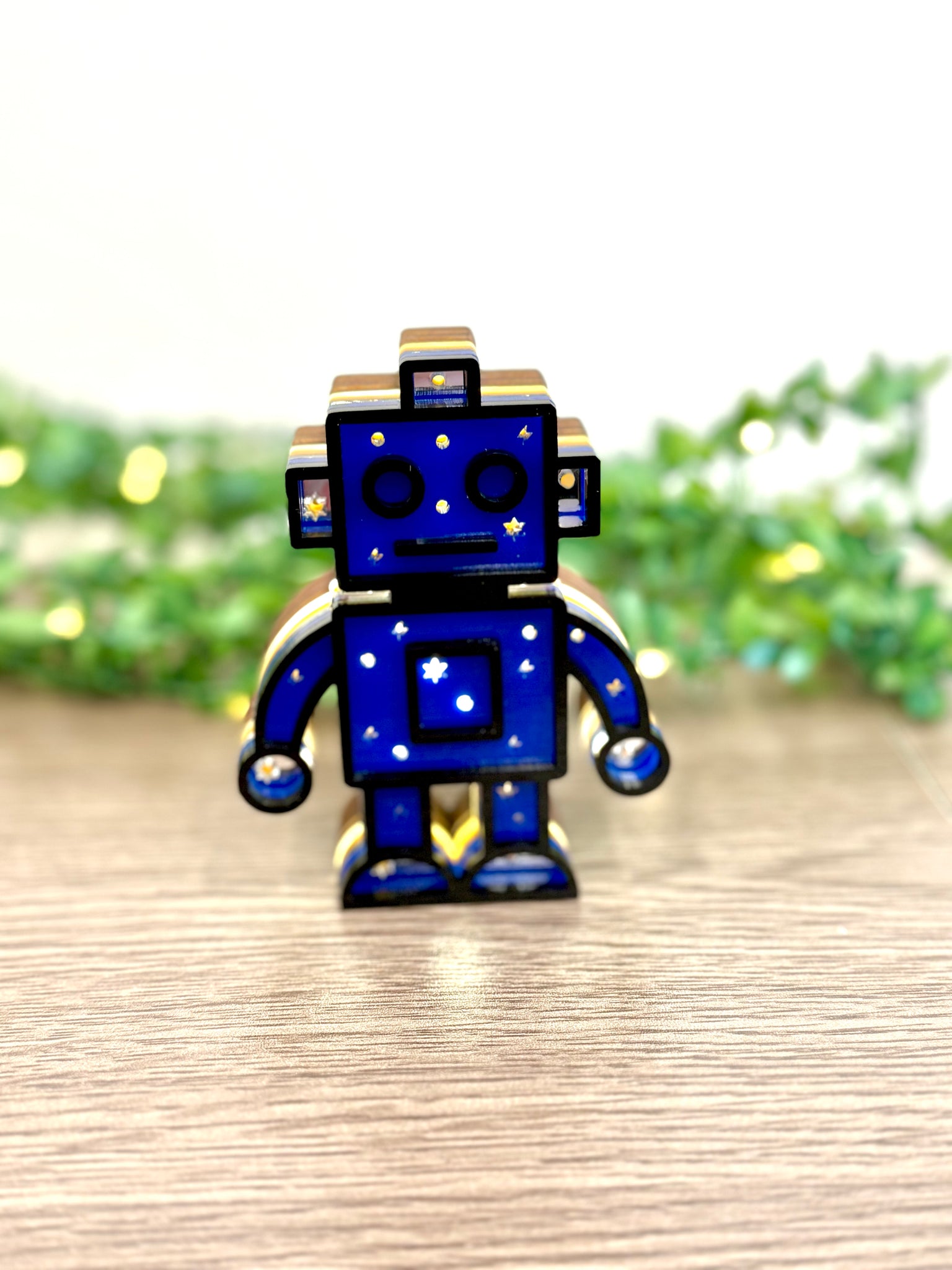 Choose between two enchanting sizes! The small night lights (about 3–4") feature a USB bulb-style light, perfect for a cozy glow in any corner. The large night lights (6–8") are lit with a string of delicate fairy lights, creating a soft, magical ambiance. Both are crafted with layered acrylic and wood for a unique, handcrafted touch.