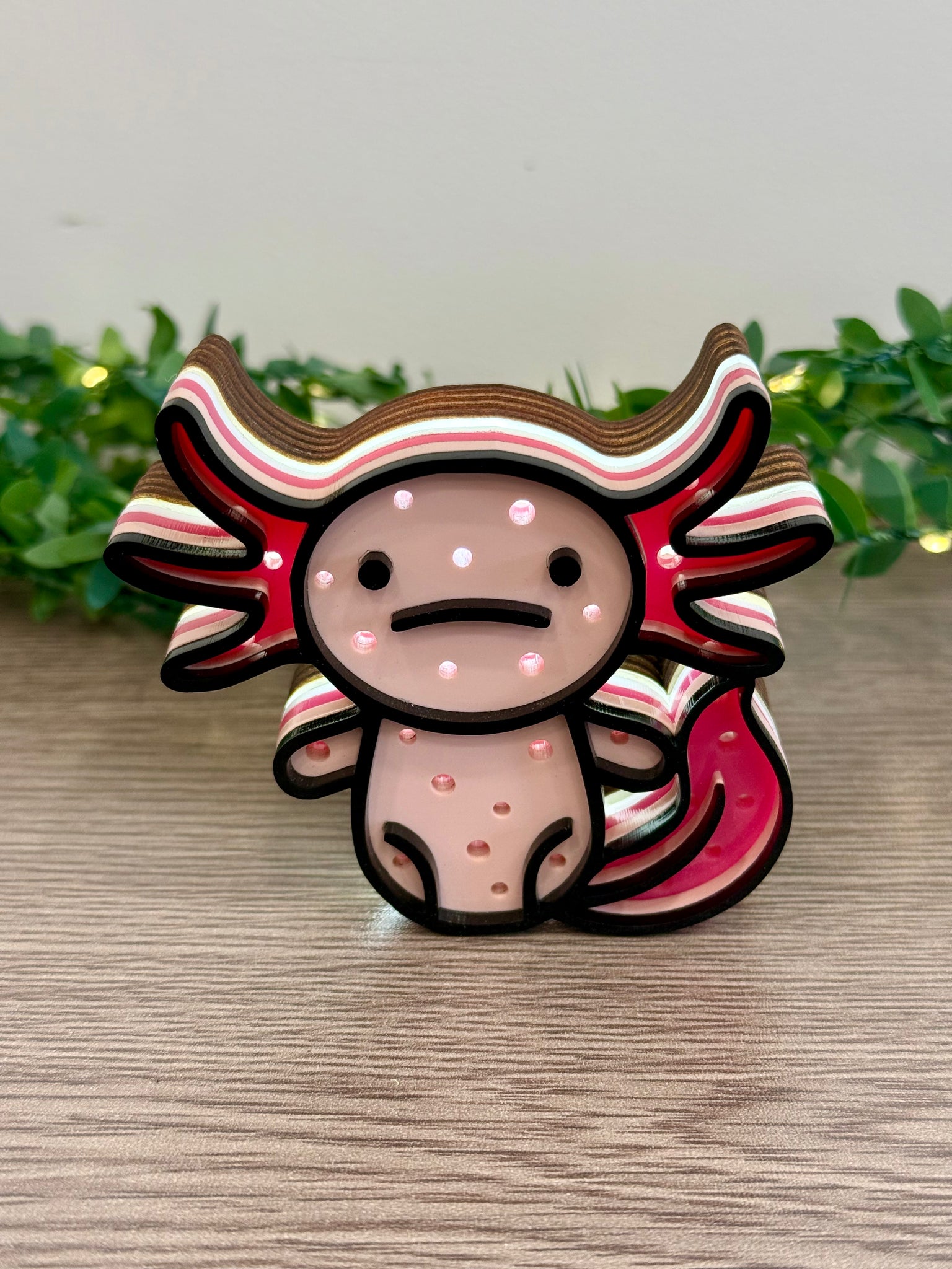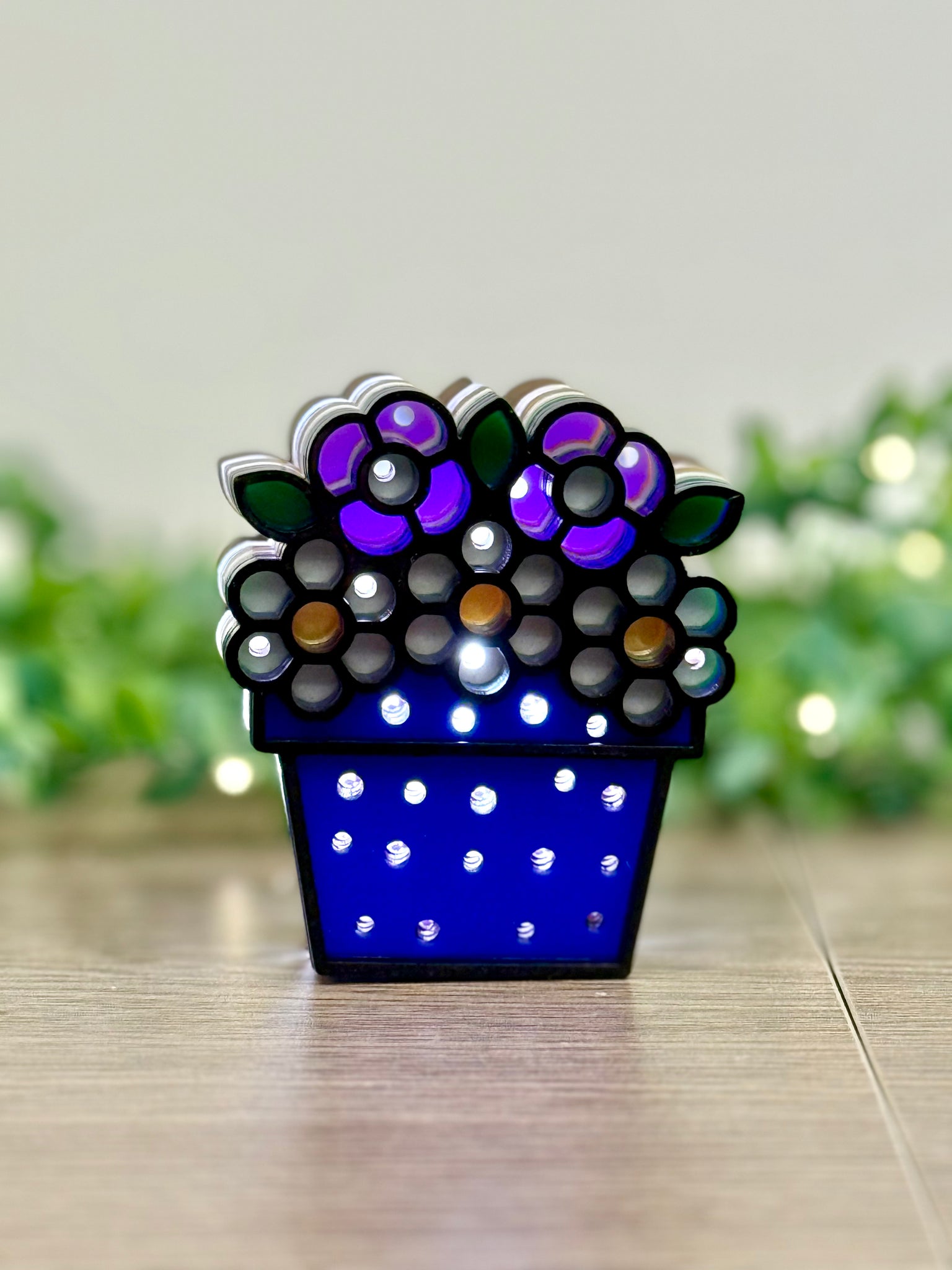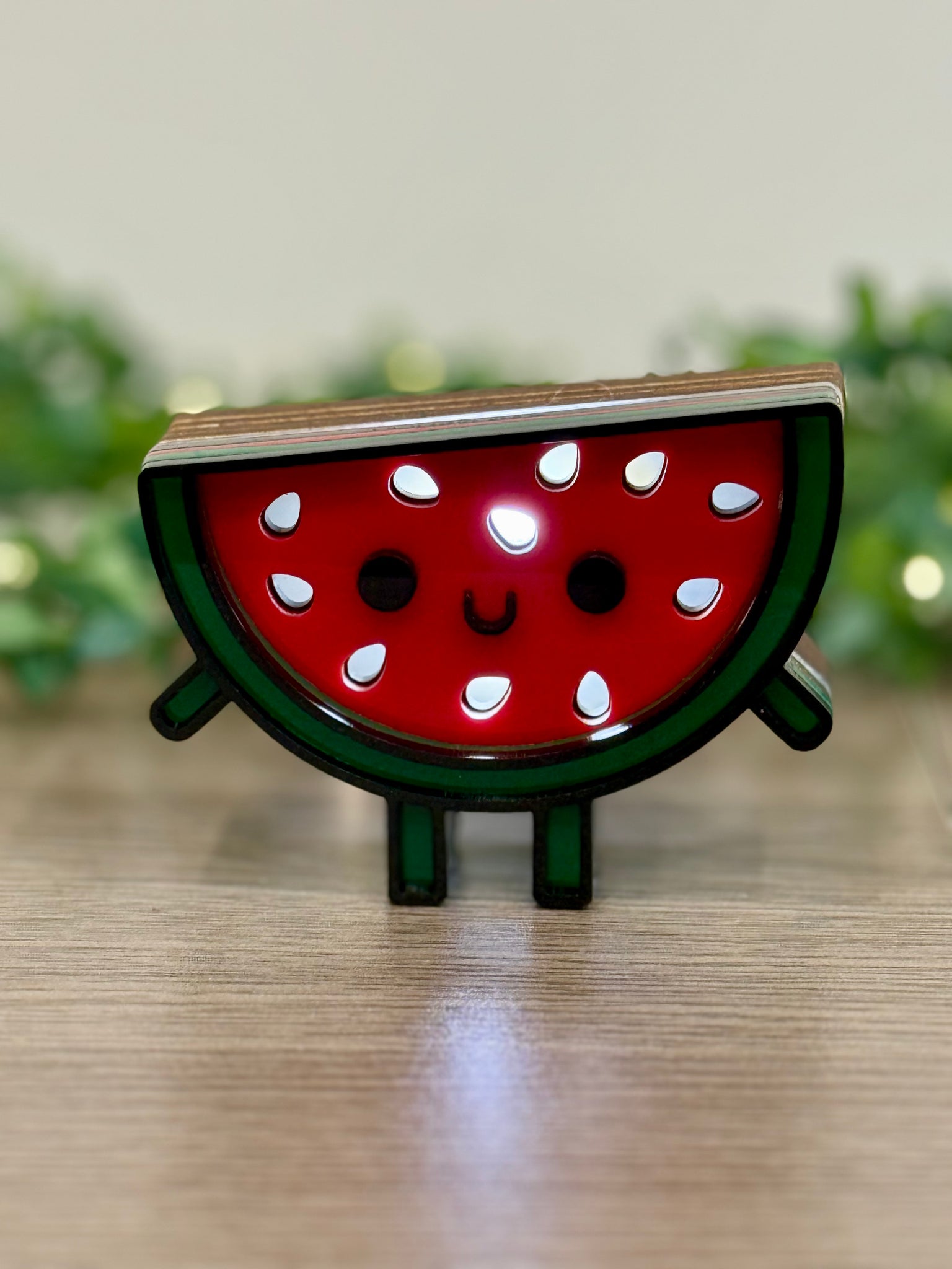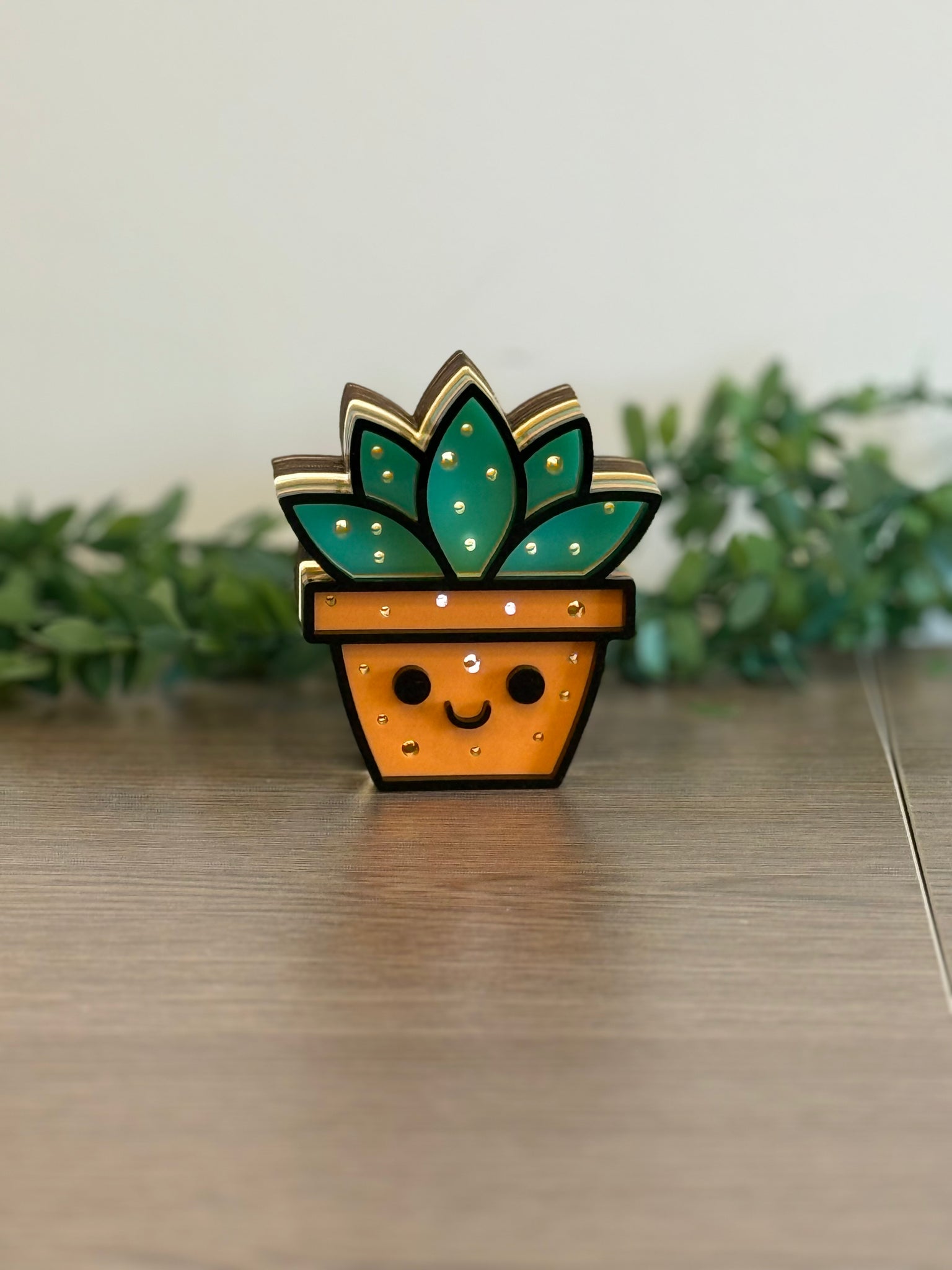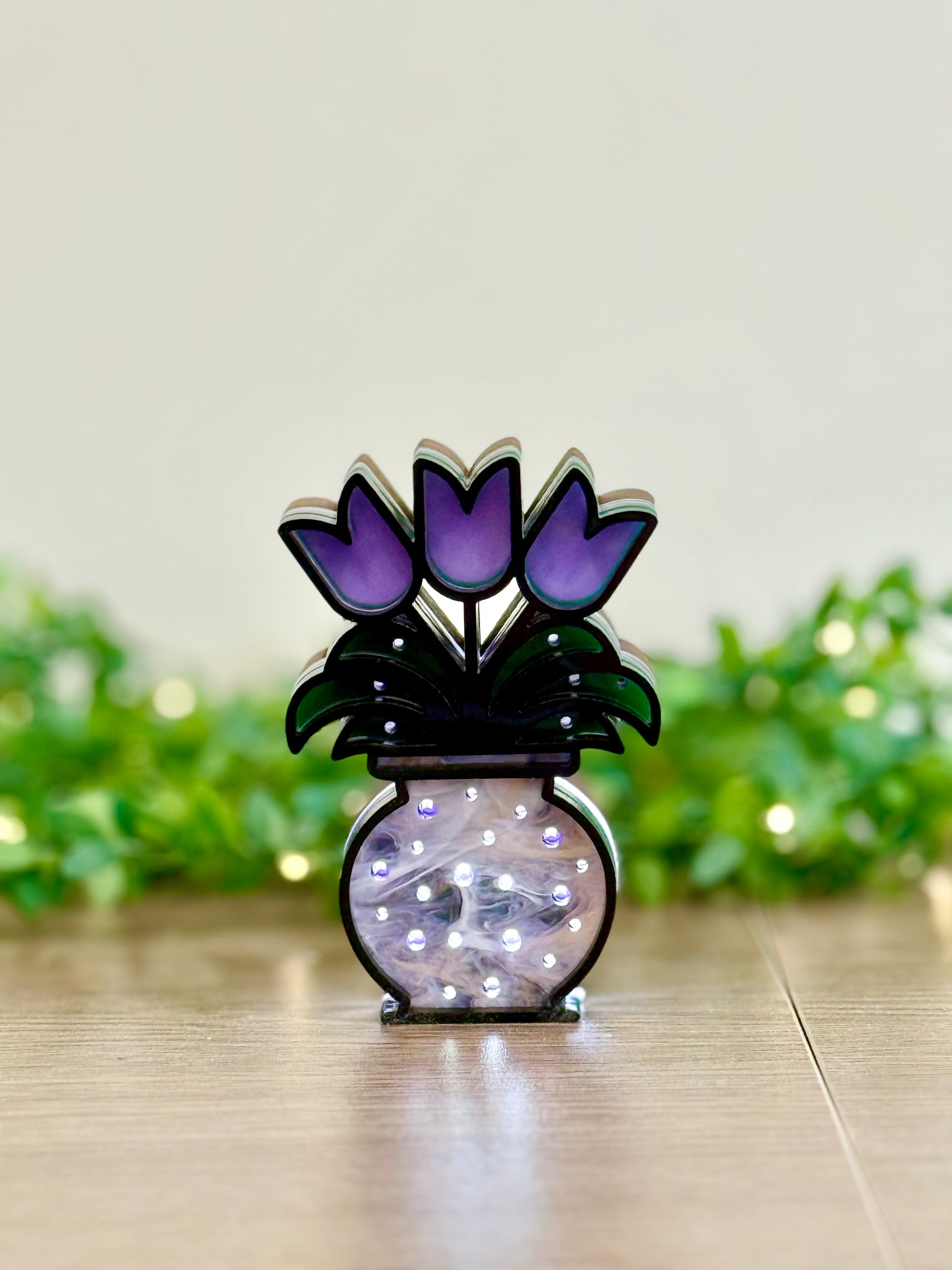 Choose between two enchanting sizes! The small night lights (about 3–4") feature a USB bulb-style light, perfect for a cozy glow in any corner. The large night lights (6–8") are lit with a string of delicate fairy lights, creating a soft, magical ambiance. Both are crafted with layered acrylic and wood for a unique, handcrafted touch.